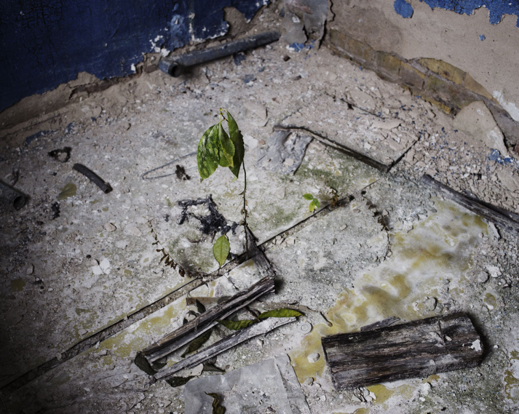 Karl Marx Street. Larissa’s house is still standing. The garden is not maintained. The gate is closed. I knock. She doesn’t answer. I go inside. The kitchen is devastated, the fireplace broken, the table on the floor. There are in a jar, the fluorescent cocktail picks that we had bought for a festive dinner organised on the last day we spent together. Dried red flowers are still hanging on the wall.