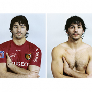 After the series “workers” I leave temporarily the world of work and begin a “sports” series featuring the combat sports of boxing and rugby. In keeping with my “Before/After” theme, one portrait is taken before the fight and the second one after. The apparent transformations on the competitor take place in a rather short time. The image resulting from this experience testifies to the physical and moral commitment of the boxer. Each fight is represented by the traces it leaves, visible in the space of these two photographs.