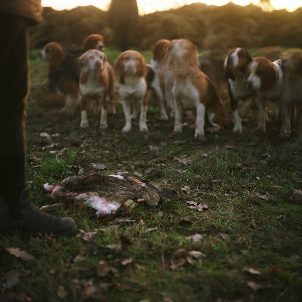 The selection fits into a new cycle entitled “The table of the hounds”. It refers to the photographer being invited to dinner during a hunt. The trackers (people who, during a beat and with the help of pack, track the game) welcomed Jean-Luc Chapin amongst them on the condition that he would share their meal, served on a separate table called “the Table of the hounds”.
