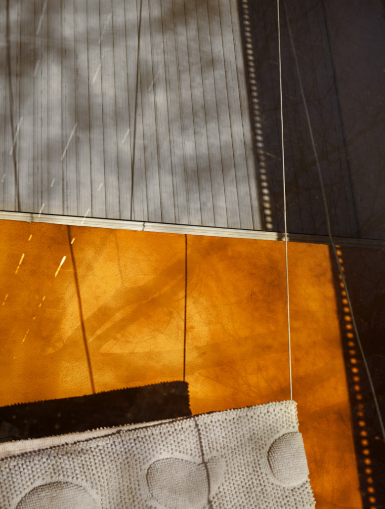 La troisème hypothèse est probablement la bonne. Tina Merandon s’est interrogée: comment formuler la question sociale dans un langage esthétique? En faisant des contraintes l’amorce d’un lexique formel (refus de poser, environnement d’architectures vétustes, impossibilité de montrer les intérieurs) en opérant ensuite une réduction de ce langage visuel afin de travailler avec des silhouettes, des couleurs et des matières. Tina Merandon parvient à parler une langue vivante de la modernité. Celle d’une géométrie colorée, d’une vétusté qui offre sa matérialité comme un ingrédient plastique : le tout résonne dans une lumière qui combine ces éléments en une sorte de grande tapisserie.