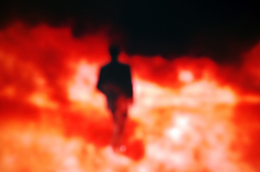 Dans la dernière scène du film Théorème de Pier Paolo Pasolini, film mystique et métaphysique, le directeur d’une usine milanaise se déshabille dans une gare puis court nu dans le désert. Cet homme en quête de liberté et d’absolu cherche à échapper à une société urbaine anxiogène qui l’aliène et l’éloigne de son idéal. En s’évadant dans ce désert infini il retrouve son individualité et sa part d’éternité.